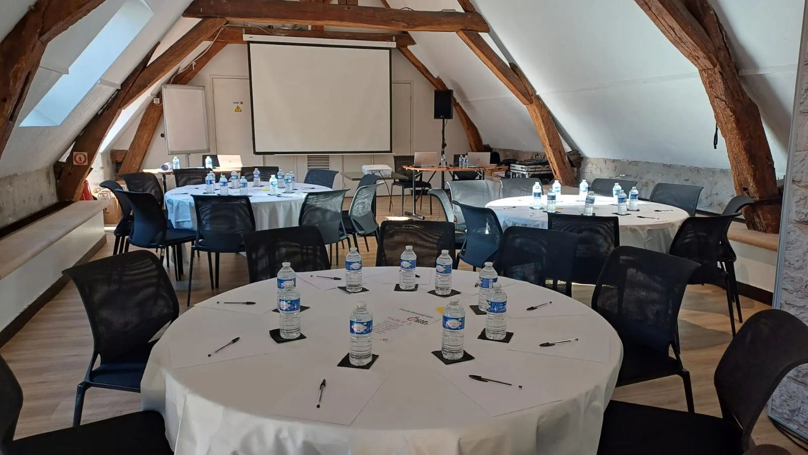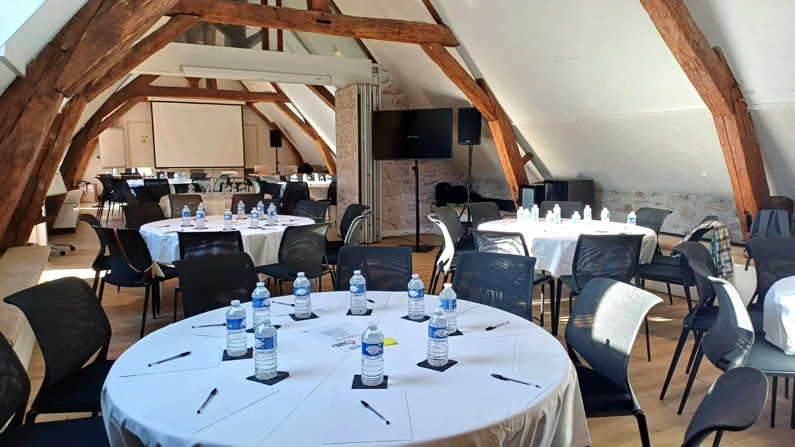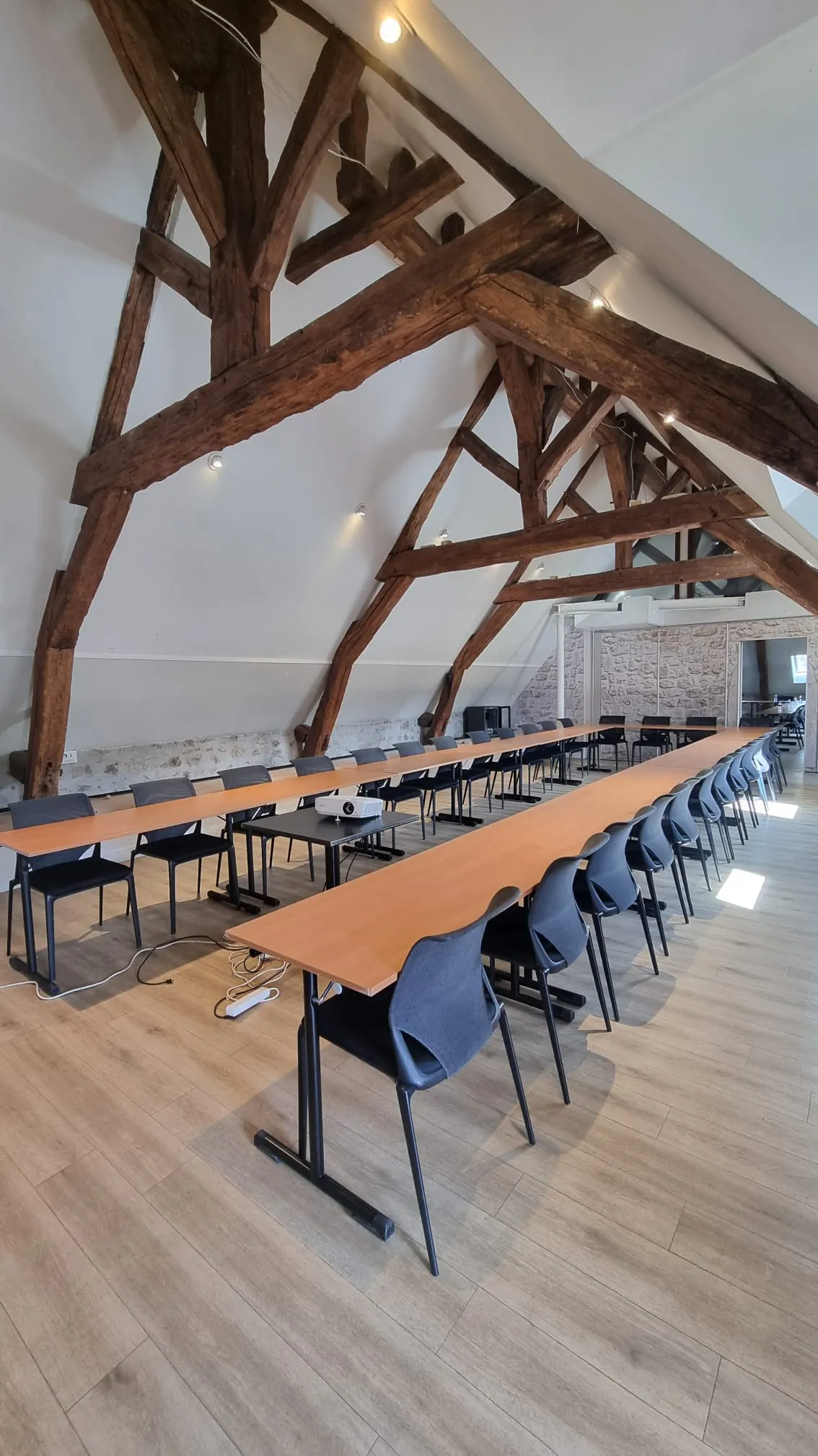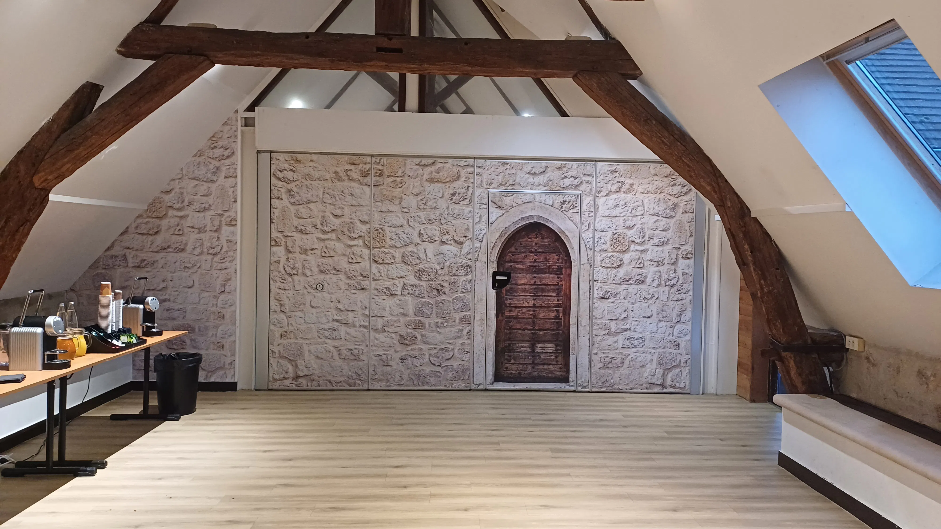 - 4 modular seminar rooms from 52 to 183 m² located in the outbuildings of the Abbey, with natural light and air conditioning,